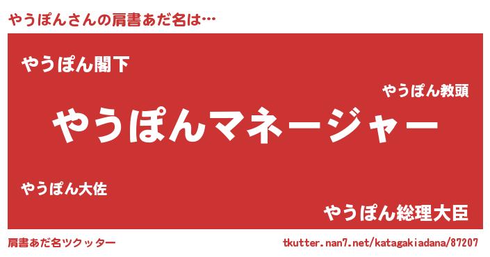 | 意味不明あだ名 | 『自称やうぽん』『やうぽんフォーエバー』 |
