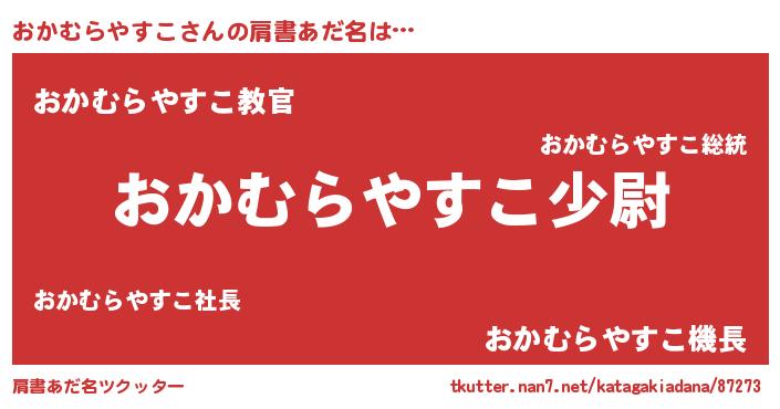 | ヘコむあだ名 | 『おかふぇ~』『おかむらやすこ(苦笑)』 |