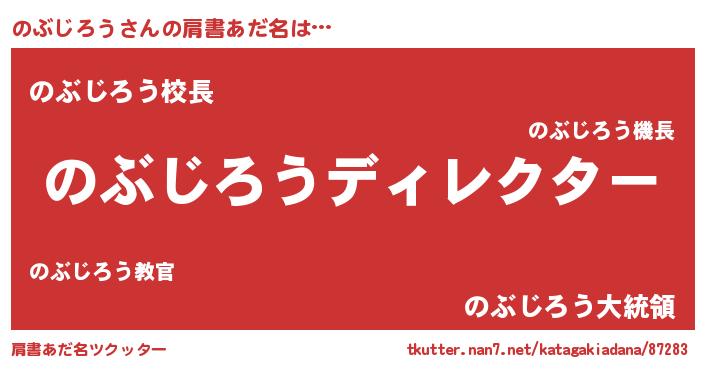 | 男性向けラノベタイトル風あだ名 | 『のぶじろうに滅ぼされるだけの簡単なお仕事です』 |