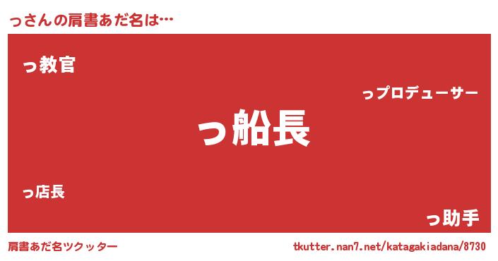 | 男性向けラノベタイトル風あだ名 | 『緋弾のッ』『ッアートオンライン』 |