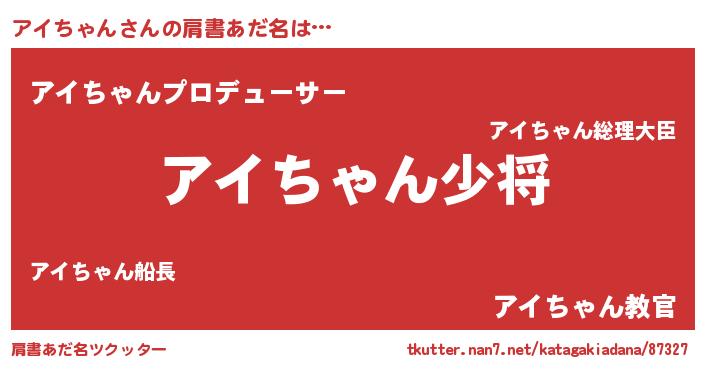 | 男性向けラノベタイトル風あだ名 | 『アイちゃん~年齢イコール彼女いない歴の魔法使い~』 |
