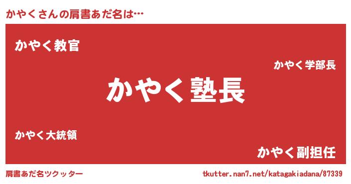 | ヘコむあだ名 | 『かやっぺ』『かやく(苦笑)』 |