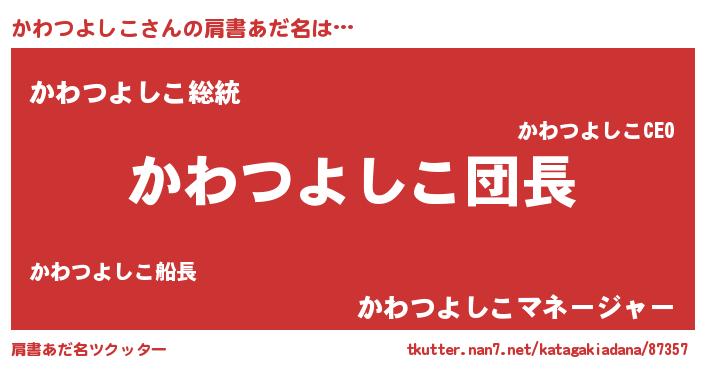 | 意味不明あだ名 | 『とにかく怪しいかわつよしこ』 |