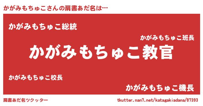 | ヘコむあだ名 | 『かがぷりん』『かがみもちゅこ(苦笑)』 |