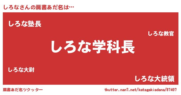 | 女子向けラノベタイトル風あだ名 | 『死神しろなの再婚』『しろな様がみてる』 |