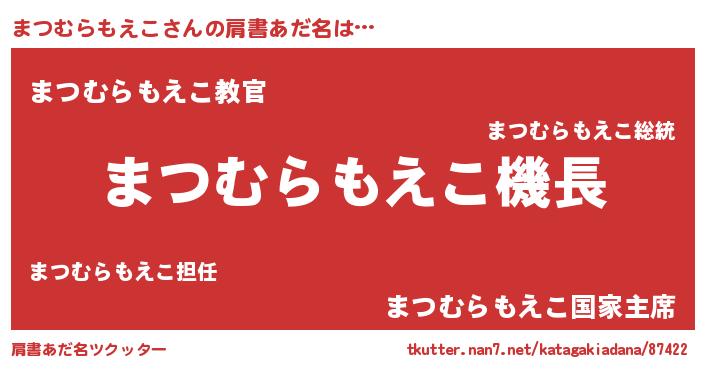 | 男性向けラノベタイトル風あだ名 | 『緋弾のマツムラモエコ』 |