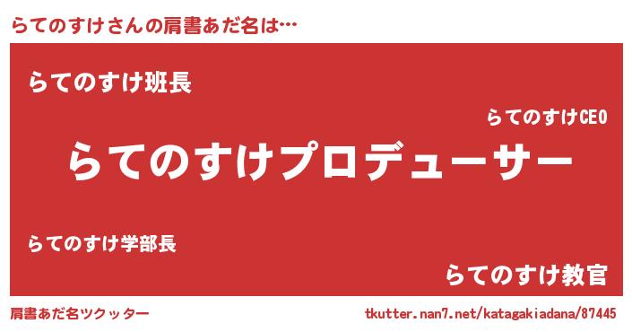 | 男性向けラノベタイトル風あだ名 | 『はたらくらてのすけさま!』 |