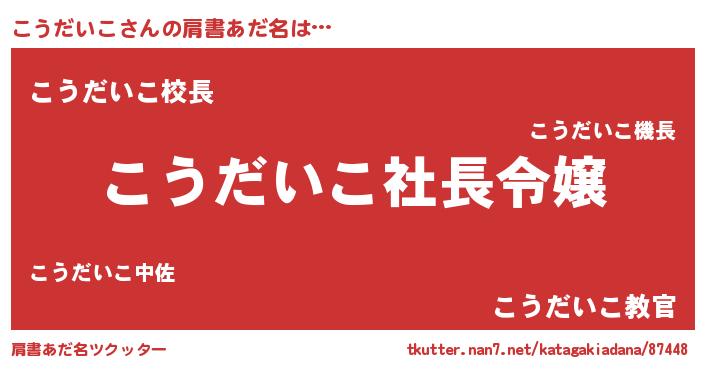 | 男性向けラノベタイトル風あだ名 | 『こうだいこの憂鬱』 |