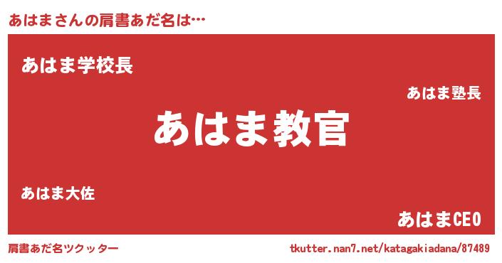 | 男性向けラノベタイトル風あだ名 | 『魔弾の王とあはま』 |