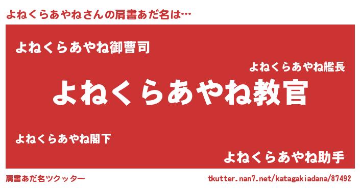 | 意味不明あだ名 | 『住所不定無職よねくらあやね(12歳)』 |