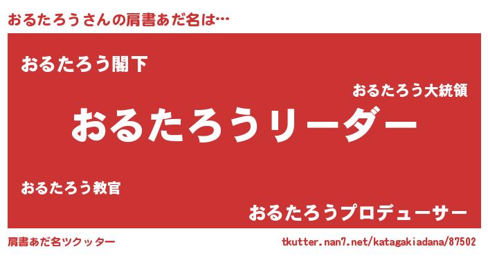 | 恥ずかしいあだ名 | 『オルリンリン』『オルタロウデラックス』 |