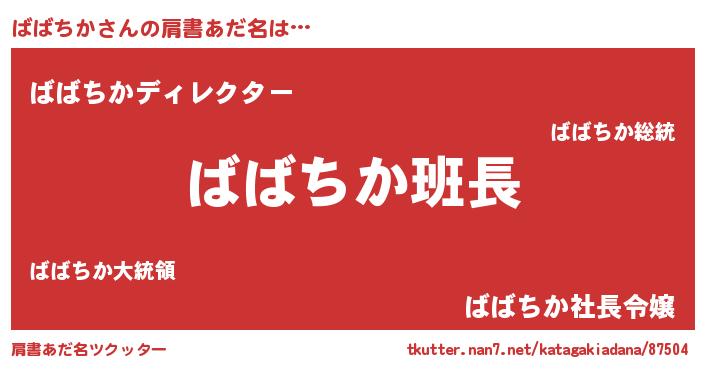 | ポケモン風あだ名 | 『ヒババチカ』『ババゴンZ』 |