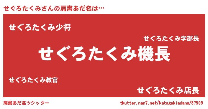 | 胡散臭い通販商品みたいなあだ名 | 『億万長者になれる霊験あらたかなお札…その名も「せぐろたくみ」』 |