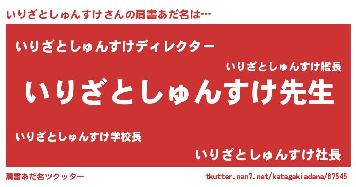 | 男性向けラノベタイトル風あだ名 | 『誰もが恐れるあのいりざとしゅんすけが、ぼくの専属メイドになるようです。』 |