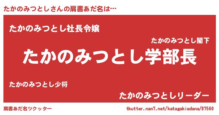 | 男性向けラノベタイトル風あだ名 | 『ノーゲーム・ノータカノミツトシ』 |