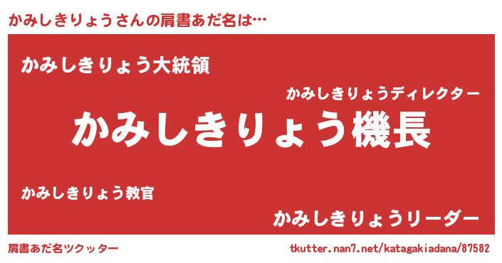 | 市区町村名 | 『かみ田谷区』『かみ幌市』 |