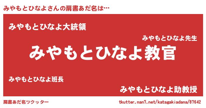 | 意味不明あだ名 | 『住所不定無職みやもとひなよ(11歳)』 |