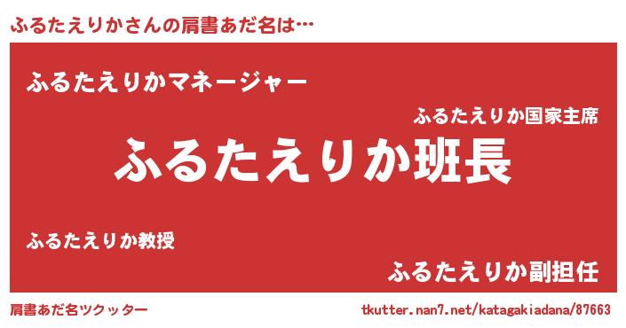 | ポケモン風あだ名 | 『ヒフルタエリカ』『フルゴンZ』 |