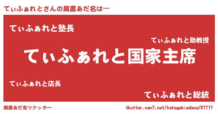 | 意味不明あだ名 | 『てぃふぁれとフォーエバー』 |