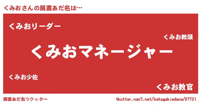 | 欧米人風あだ名 | 『アンジェラ・くみお』『ウサインくみお』 |