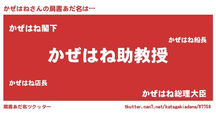 | ヒーロー風カッコイイあだ名 | 『慈愛の使者かぜはね』『仮面カゼダー』 |