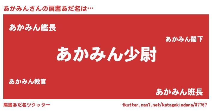| 男性向けラノベタイトル風あだ名 | 『転生したらあかみんだった件』 |