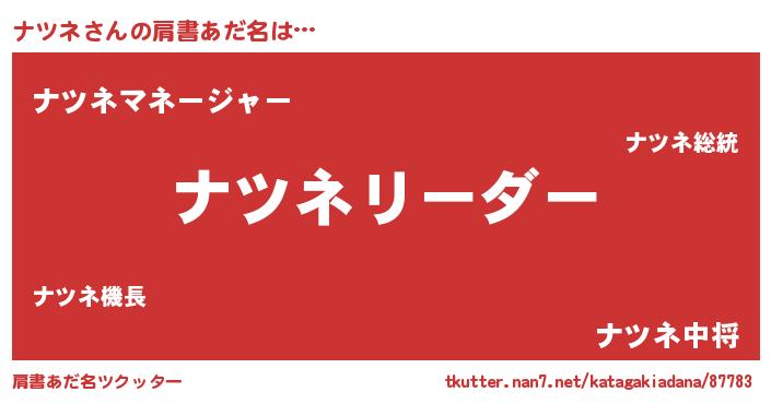 | ヒーロー風カッコイイあだ名 | 『黄金騎士ナツ』『究極戦士ナツネ』 |