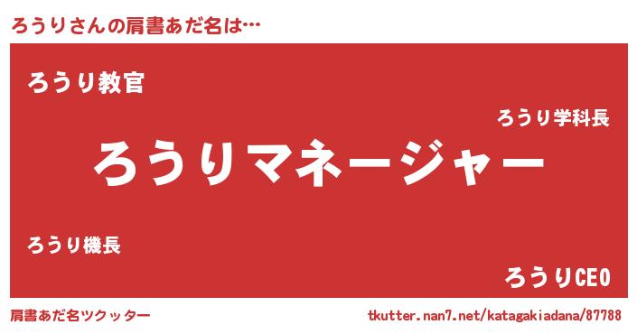 | 男性向けラノベタイトル風あだ名 | 『はたらくろうりさま!』『ろうりの憂鬱』 |