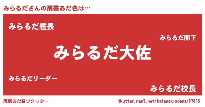 | 意味不明あだ名 | 『もやし科みらるだ属』『自称みらるだ』 |