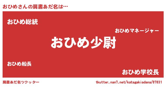 | 女子向けラノベタイトル風あだ名 | 『おひめの玉の輿計画!』 |