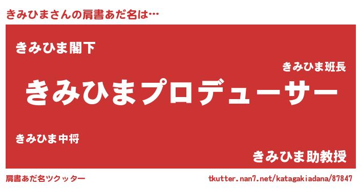 | 可愛いあだ名 | 『きみうちぇる』『きみちゅっちゅ』 |