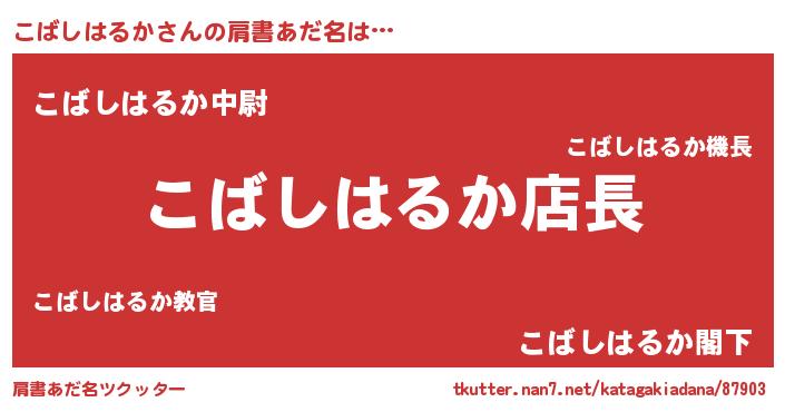 | ヒーロー風カッコイイあだ名 | 『スーパーコバシハルカ』『仮面コバダー』 |