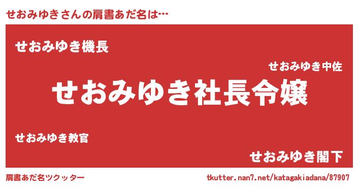 | ヘコむあだ名 | 『せおもー』『せおみゆき(苦笑)』 |