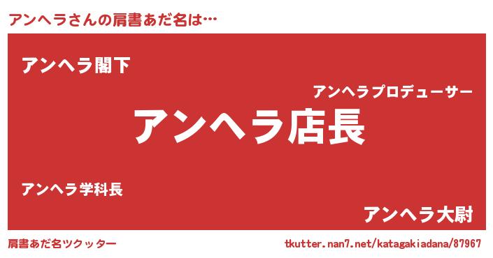 | ヘコむあだ名 | 『アンにゅー』『アンヘラ(笑)』 |