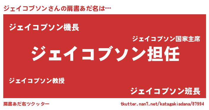 | 意味不明あだ名 | 『永久保存ジェイコブソン』 |