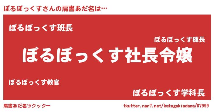 | 男性向けラノベタイトル風あだ名 | 『ぼるぼっくすの憂鬱』 |