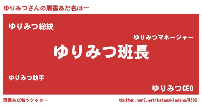 | 意味不明あだ名 | 『とにかく怪しいゆりみつ』 |