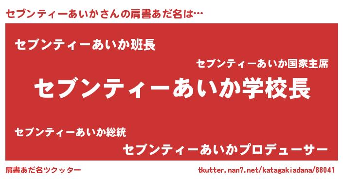 | 男性向けラノベタイトル風あだ名 | 『おまえをオタクにしてやるから、俺をセブンティーあいかにしてくれ! 』 |