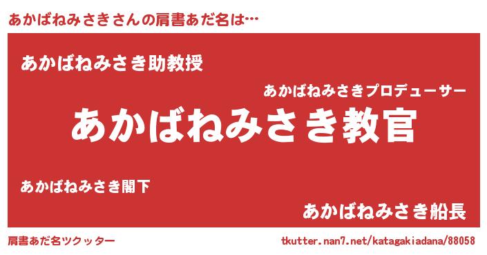 | 意味不明あだ名 | 『住所不定無職あかばねみさき(4歳)』 |