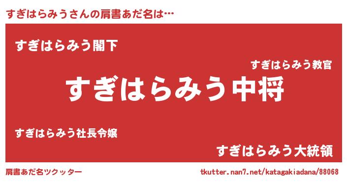 | ヒーロー風カッコイイあだ名 | 『最強戦士スギハラミウ』『仮面スギダー』 |