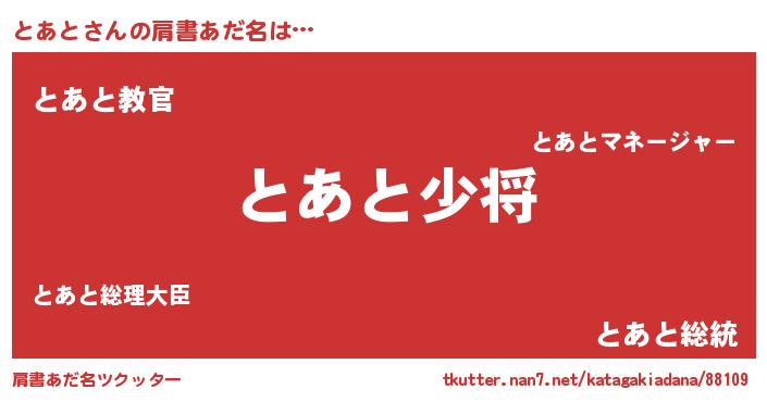| 胡散臭い通販商品みたいなあだ名 | 『あなたにだけ特別に提供する世界で10本だけ現存している希少なブランデー…その名も「とあと」』 |