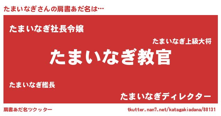 | 男性向けラノベタイトル風あだ名 | 『この素晴らしい世界にたまいなぎを!』 |
