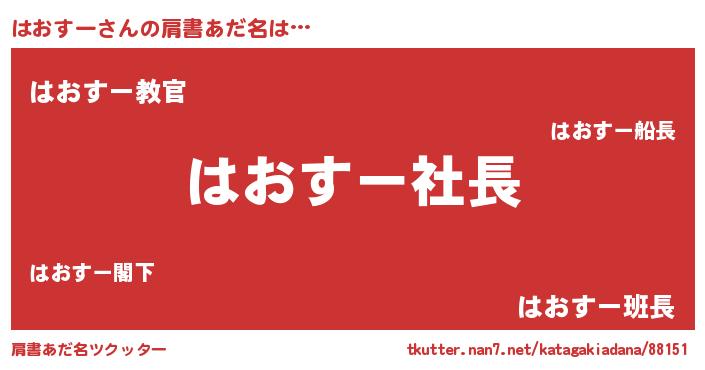 | 男性向けラノベタイトル風あだ名 | 『はおすーの憂鬱』『魔弾の王とはおすー』 |