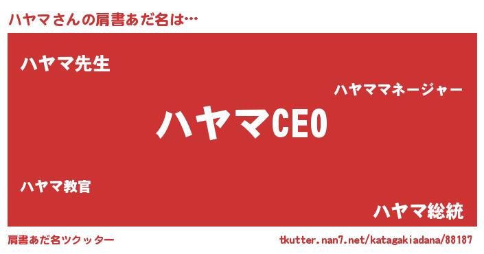 | ヘコむあだ名 | 『ハヤふぇ~』『ハヤマ(笑)』『豆乳』 |