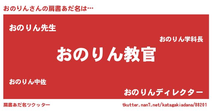 | 男性向けラノベタイトル風あだ名 | 『この素晴らしい世界におのりんを!』 |