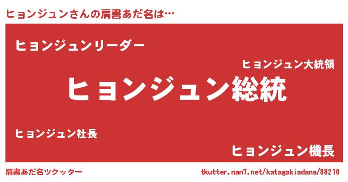 | 男性向けラノベタイトル風あだ名 | 『Re:ヒョンジュンから始める異世界生活』 |
