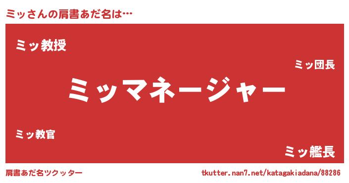 | ヘコむあだ名 | 『ミッを』『なまこ酢』『ミッにー』 |