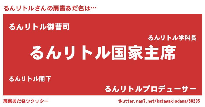 | 意味不明あだ名 | 『るんリトルフォーエバー』 |