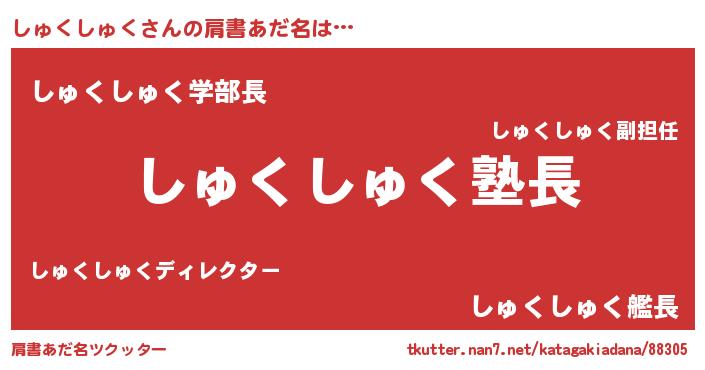 | 意味不明あだ名 | 『とにかく怪しいしゅくしゅく』 |