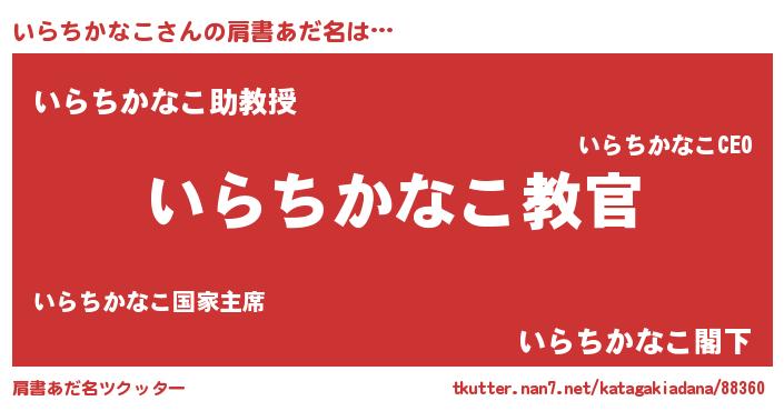 | 男性向けラノベタイトル風あだ名 | 『この素晴らしい世界にいらちかなこを!』 |